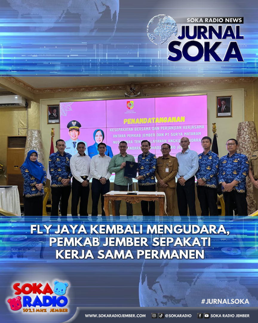 Kerja sama antara Pemkab Jember dan Fly Jaya Air menjadi bukti nyata keseriusan pemerintah daerah dalam memperkuat infrastruktur transportasi udara. Langkah ini diharapkan mampu mempercepat pertumbuhan ekonomi, memperluas jangkauan bisnis, dan membawa Jember lebih dekat dengan pusat kegiatan ekonomi nasional di Jakarta.(Yif)